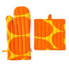 What a fun addition to the kitchen! These oven mitt and potholder sets feature the fresh, hand painted designs of Donna Gorman. The oven mitt is extra long (14" x 6") by design to protect your arms when cooking & baking. The potholder measures 8.25" x 8.25". The set comes with one oven mitt and one potholder. Both are channel quilted from 100% cotton fabric with polyester wadding.